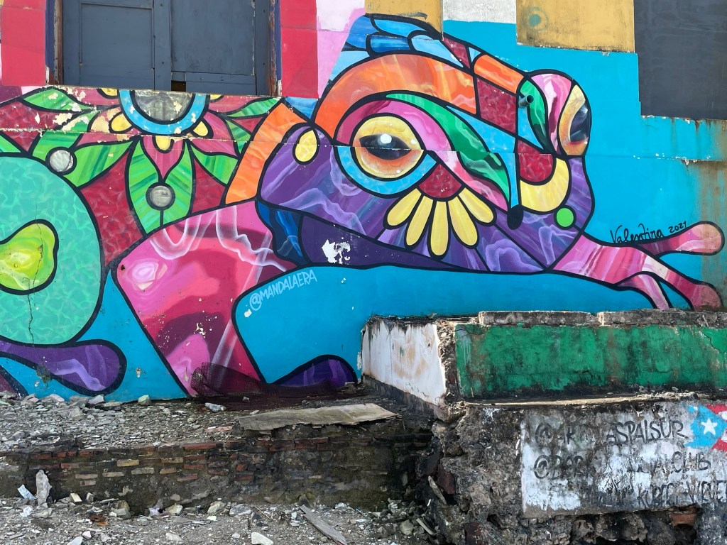 Over the past year I have had the good fortune of working in San Juan. Puerto Rico has held a special place in my heart ever since high school. I love the Puerto Rican people. I love the Puerto Rican culture. And in the past year, I have fallen in love with the murals of San Juan. Whether walking the streets of Old San Juan and La Perla, or commuting by foot on my approximately 1 mile trek from hotel in Condado to client site in Santurce, I have been struck by the quality, variety, and the artistry of the many murals. They are integral to new life being breathed in as part the city’s urban renewal efforts, but also seamlessly integrate with the detritus of decades of decay. San Juan murals transcend the decorative. They serve as a reflection of the resiliency, the spirit, and the character of the island and its inhabitants. They call out unabashedly, “Es lo que somos!”